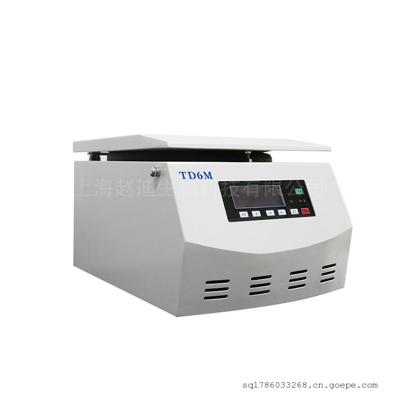 技术参数:型号 TD6M 转速 6000r∕min 离心力 5200×g 容量 12×10/15ml 12×20ml 6×50ml 定时范围 0-99min 电源 AC 220V 50Hz 15A 整机噪声 ≤60dB 外形尺寸 340X400X270(mm) 重量 25kg