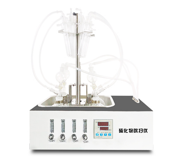 水样中的硫化物经酸化,生成的硫化氢随载气(氮气)进入吸收瓶/吸收显色管中被吸收溶液(乙酸锌-乙酸钠溶液或2%氢氧化钠溶液)吸收,选择相应的分析方法对吸收瓶/吸收显色管中吸收的硫离子进行分析测定。BALHW-4水质硫化物酸化吹气仪根据2022年新国标水质硫化物的测定-亚甲基蓝分光光度法(典量法)标准开发生产的。水质硫化物测定的样品前处理需要。